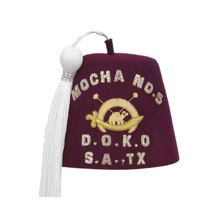 The Dramatic Order Knights of Omar Fez Hat Maroon With One Row Of Rhinestones